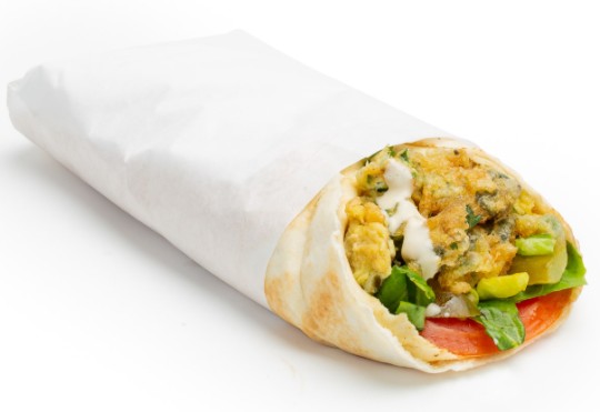 <p>Pain pita garni d’une omelette à la libanaise, de tomates, de laitue, de cornichons et de sauce au sésame.</p> <hr> <p>Pita bread filled with a Lebanese-style omelette, tomato, lettuce, pickles, and sesame sauce.</p>
